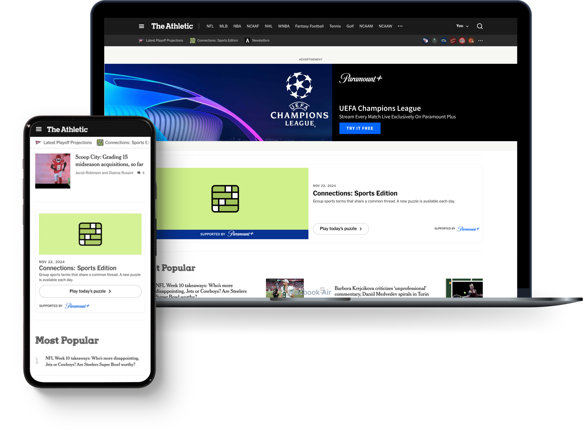 Paramount+ was the first brand to sponsor The Athletic’s Connections: Sports Edition, a daily game testing fans’ knowledge of sports teams, athletes, and other trivia. Across the month of September, Paramount+ promoted a free trial of its platform as a reward for finishing the game. During the campaign, we saw the highest number of players play the game in a single day, and overall outperformed expectations for Paramount+.
